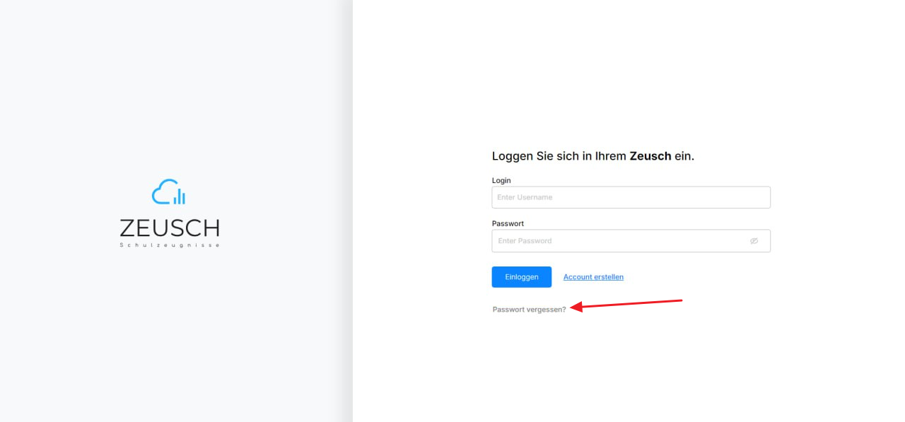 Auf der Anmeldeseite klicken Sie bitte auf die Schaltfläche „Passwort vergessen?“.