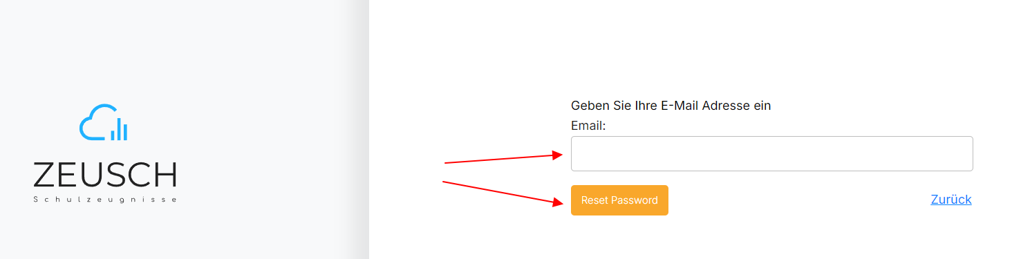 Geben Sie Ihre E-Mail-Adresse ein, mit der Sie sich zuvor in das Programm eingeloggt haben. Klicken Sie auf die Schaltfläche „Passwort zurücksetzen“.