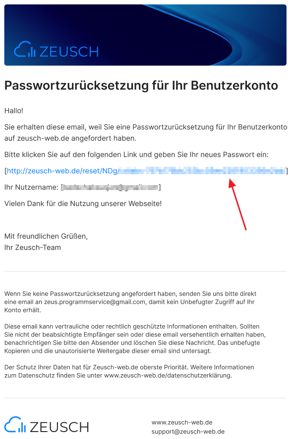 Anschließend wird Ihnen eine E-Mail mit Anweisungen zur Wiederherstellung Ihres Passworts zugesendet. Öffnen Sie diese E-Mail und folgen Sie dem darin enthaltenen Link zur Wiederherstellung Ihres Passworts.