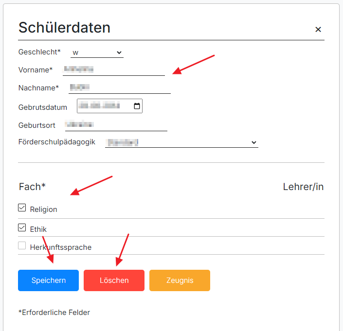- Persönliche Informationen der Schüler(innen) hinzufügen, ändern oder entfernen.