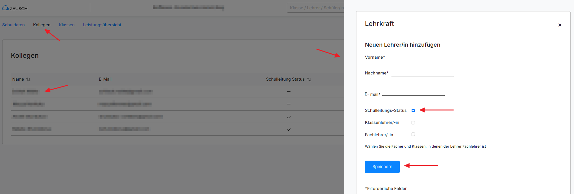 - Vergeben und Entziehen von Schulleitungsrechten für Lehrkräfte