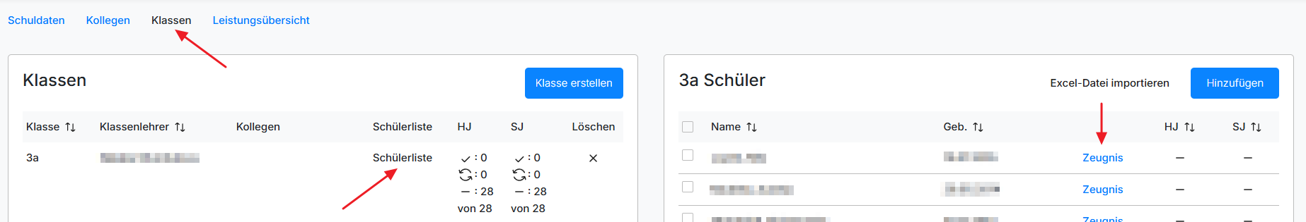 Damit sind die grundlegenden Einstellungen der Programme abgeschlossen. Klassenlehrer/innen können in ihren Konten Schüler zu ihren Klassen hinzufügen, die Fächer auswählen, die in der Klasse unterrichtet werden, und die Zeugnisse ausfüllen.