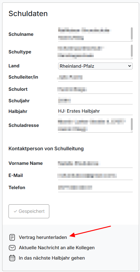- füllt den Bereich mit allgemeinen Informationen für die Schule (Schuldaten) aus.