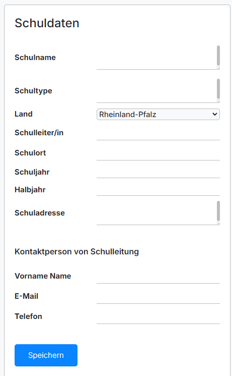 - füllt den Bereich mit allgemeinen Informationen für die Schule (Schuldaten) aus