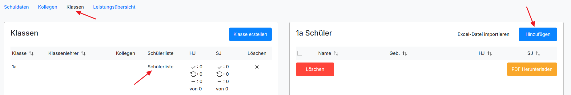 - Schüler(innen) in seine/ihre Klasse hinzufügen oder importieren.